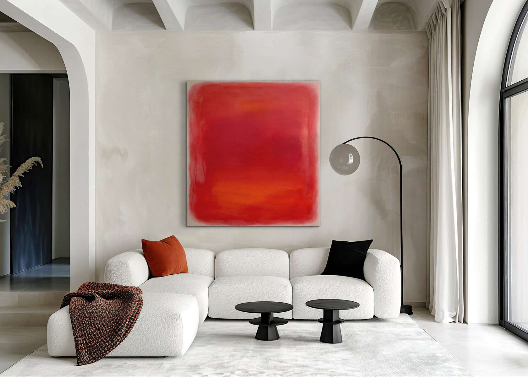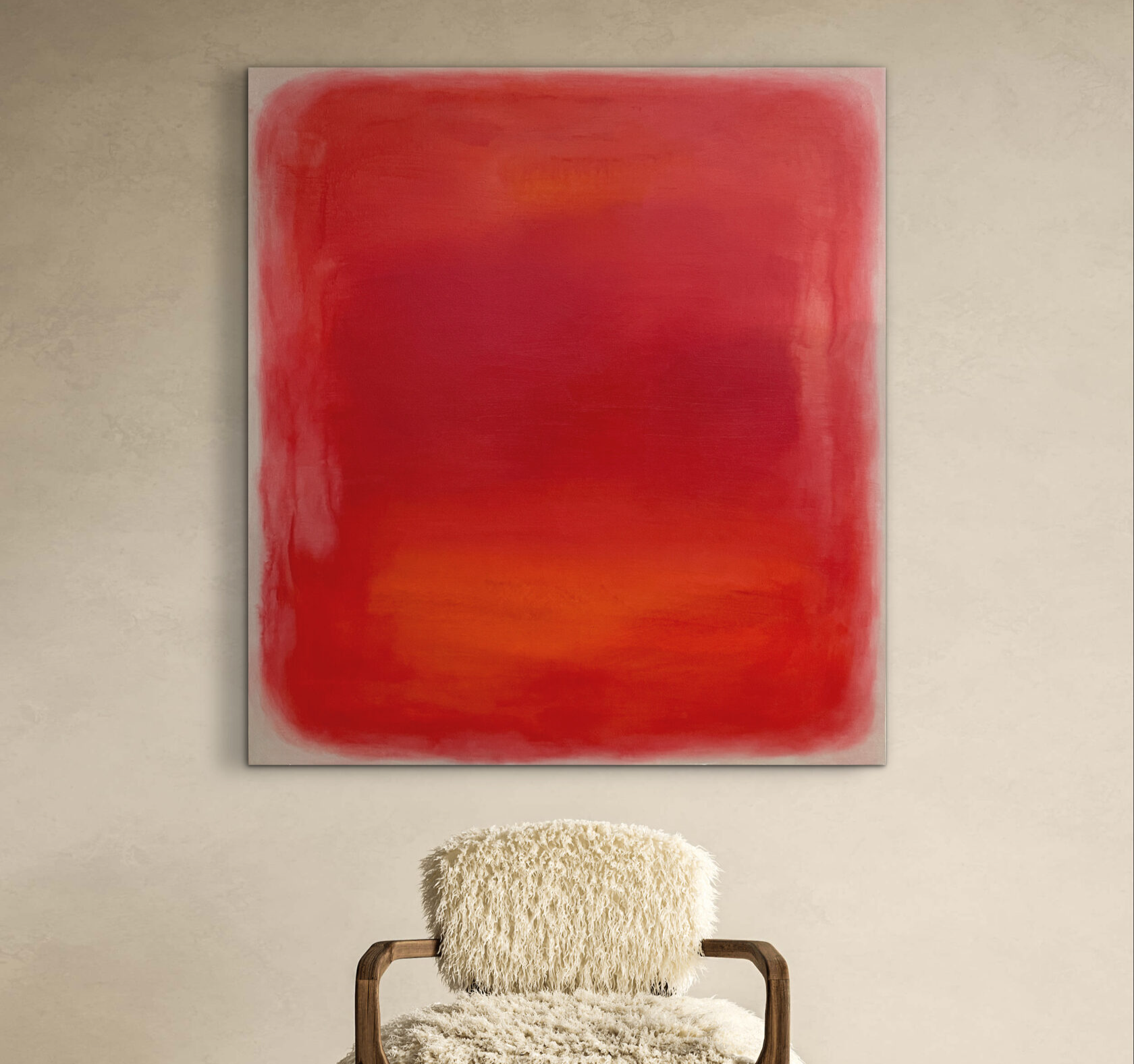 Анри Матисс о красном: «Когда я не знаю, что сказать, я беру красный и начинаю им говорить». Картина «Being in Red» – это визуальное исследование состояния бытия. Бытие в красном, – каково это? Быть – значит чувствовать. А что, если само чувство – это красный цвет? Яркие, но неагрессивные тона создают ощущение не страсти или гнева, а внутреннего тепла и мощной, ровной энергии. Это бытие спокойное, глубокое и целостное. Это принятие фундаментальной данности: я есть. Без оправданий, без истории, без цели. Просто есть. В этом есть и первобытная мощь, и невероятное облегчение. Все драмы, все мелкие трагедии и комедии блекнут, когда ты оказываешься в этом красном цветовом поле. Эта абстрактная работа – погружение в саму суть цвета, в состояние чистого присутствия вдохновленного красным. Холст, почти полностью заполненный оттенками этого цвета, становится пространством для медитации. Я писала его плавно, позволяя слоям смешиваться и просвечивать. Это бесконечно глубокая атмосфера, в которую можно смотреть, как в огонь или в воду, теряя ощущение времени. Красный – не спрашивает разрешения, он просто появляется, как чувство, которое невозможно скрыть, это миг перед поцелуем, это тёплое дыхание жизни. Погрузитесь в красное, в состояние глубокого, осознанного присутствия, и найдите в нём себя.