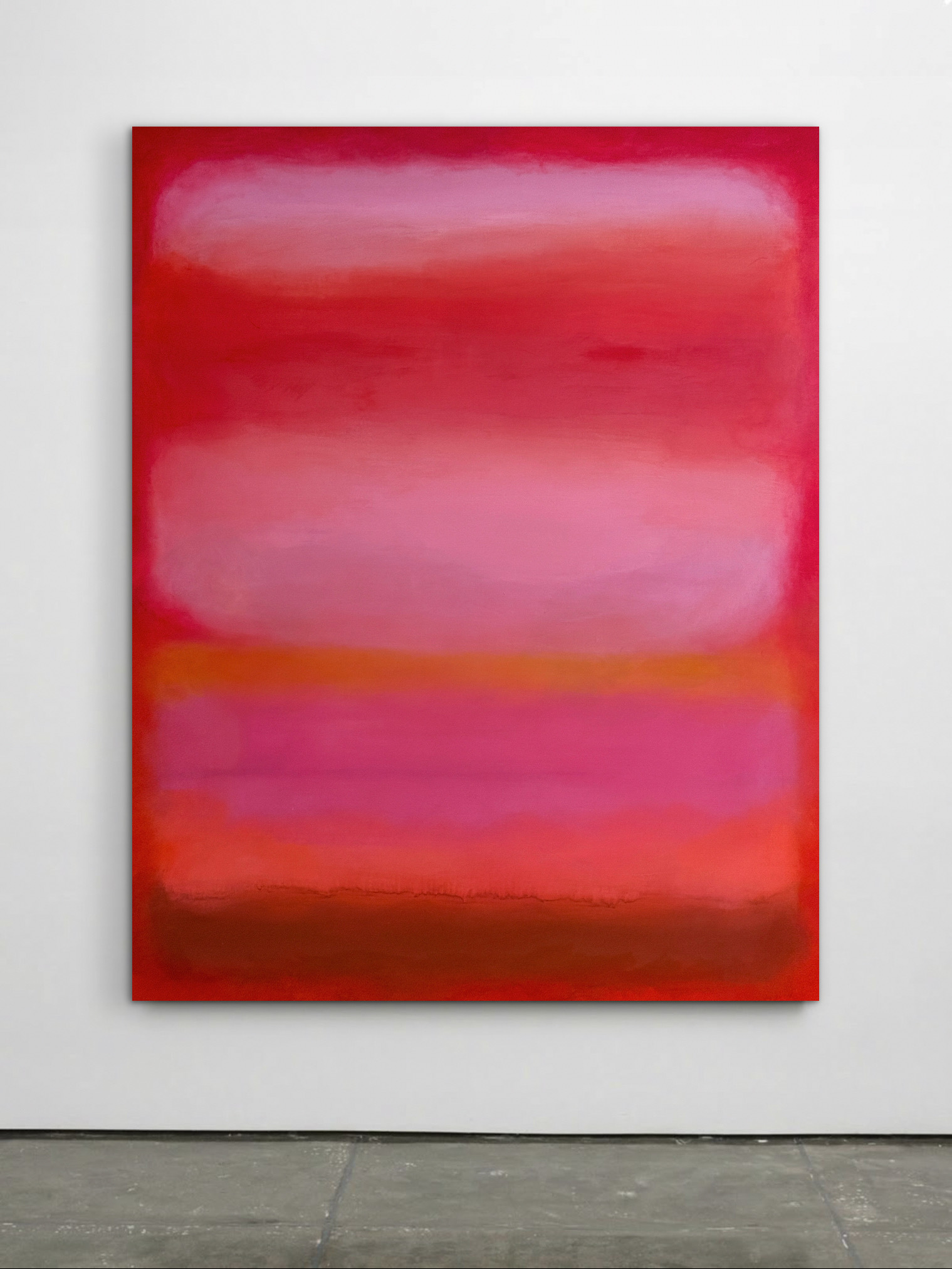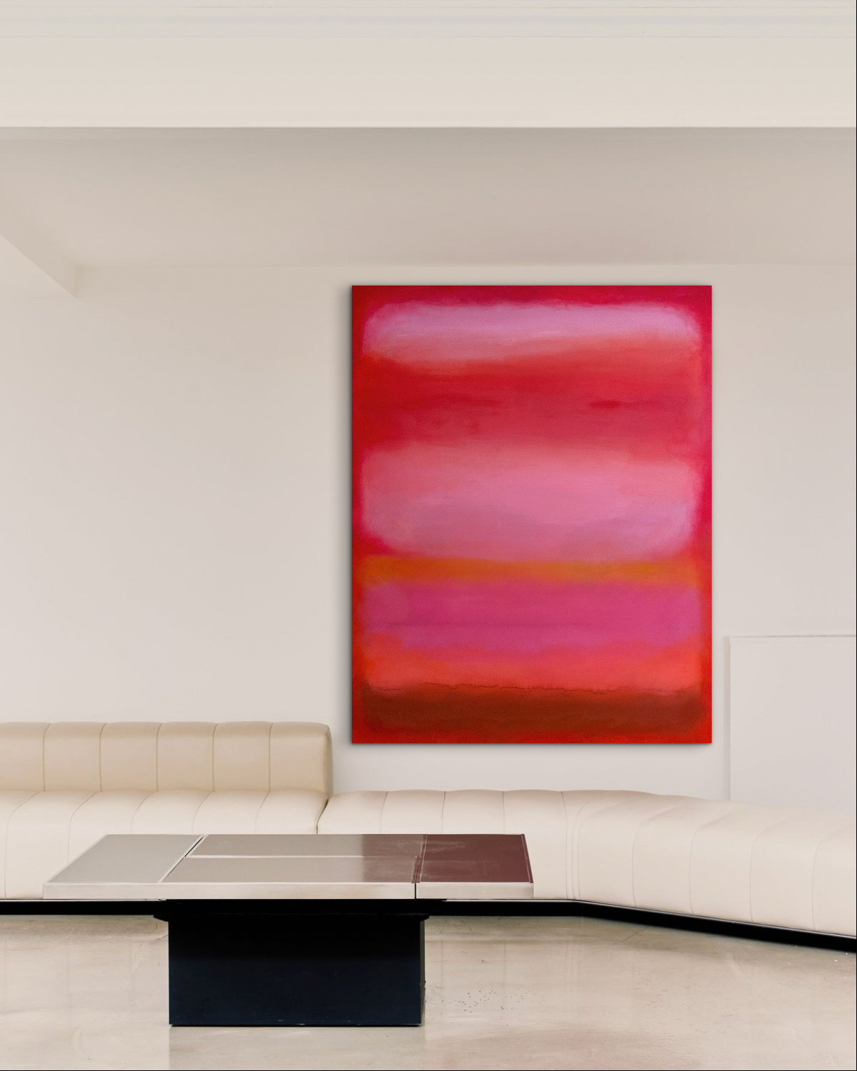 В этой работе я продолжаю исследование цветового поля как пространства внутренних состояний. Эта картина – миг равновесия, хрупкая грань между двумя состояниями души. Энергичность и уверенность красного здесь смягчается, растворяясь в нежности розового. Динамика создается не контрастом, а тонкими градиентами и взаимопроникновением цветов. Это не борьба, а диалог. Погружение в эту работу подобно прислушиванию к самому себе: где заканчивается моя сила и начинается уязвимость? Где страсть переходит в нежность? Это визуальная метафора внутреннего выбора, который совершается в глубине души. В этой работе я пыталась запечатлеть момент этого трепетного перехода, его бесконечную и утонченную красоту.