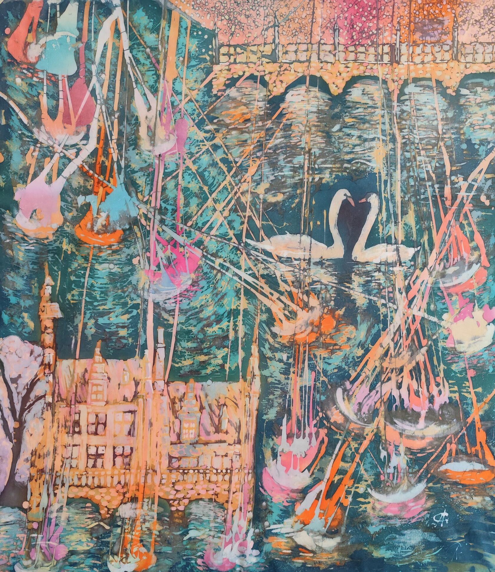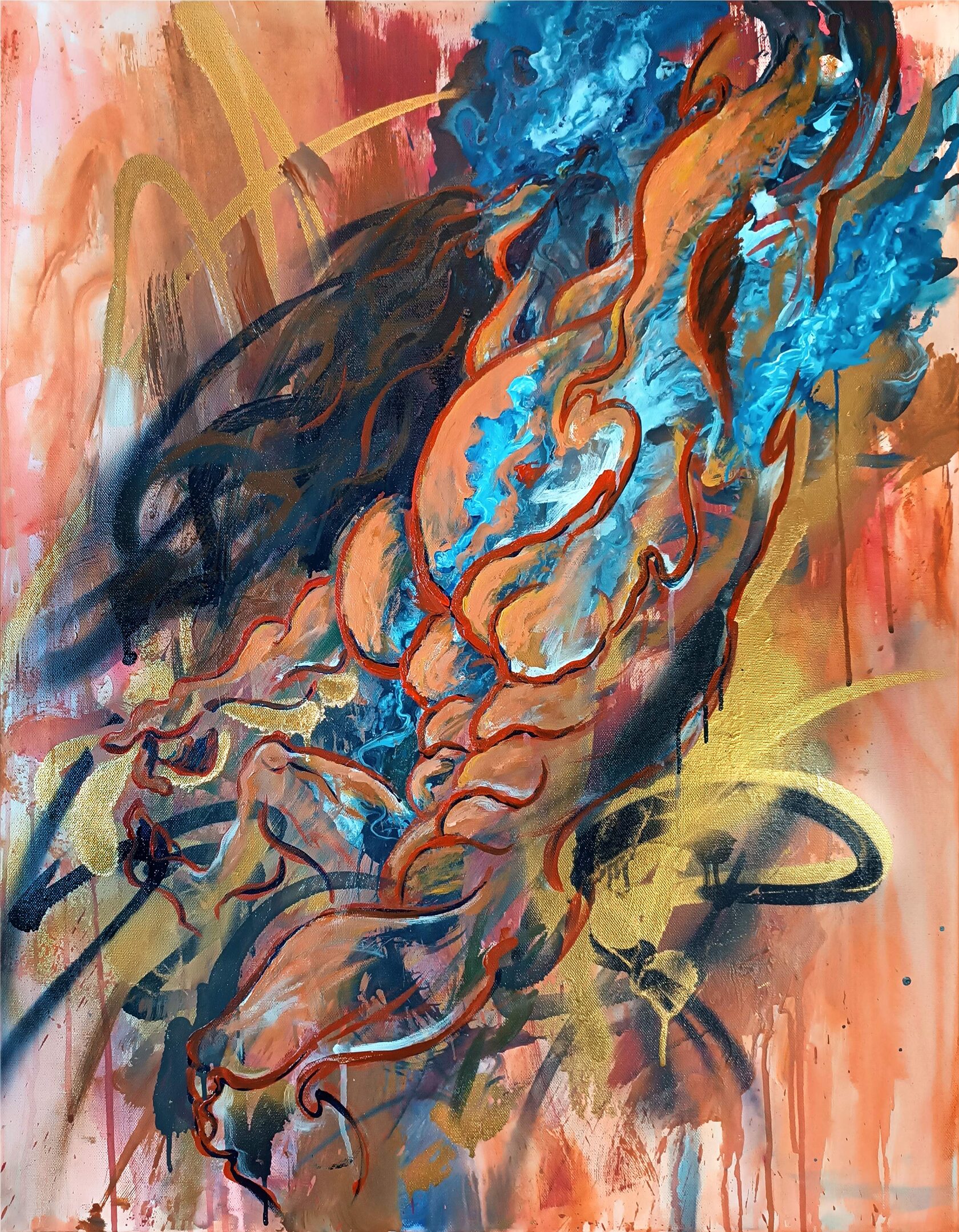 Я не могу удержать погружает зрителя в эмоциональный водоворот, где всё ускользает сквозь пальцы, оставляя лишь след — ощущение пережитого. Абстрактные силуэты словно растворяются в мягких потоках цвета, передавая тревожную хрупкость эмоций. Глубокие, приглушённые тона сталкиваются и переплетаются, как мысли, которые невозможно удержать. Цветовая палитра работы навеяна внутренним напряжением и тоской по недостижимому. Она вибрирует на грани тишины и бурь, создавая эффект, будто сама реальность теряет очертания. Размытые формы, тонкие градации оттенков и отсутствие чётких границ символизируют то, что исчезает, не успев стать настоящим — память, чувство, взгляд.