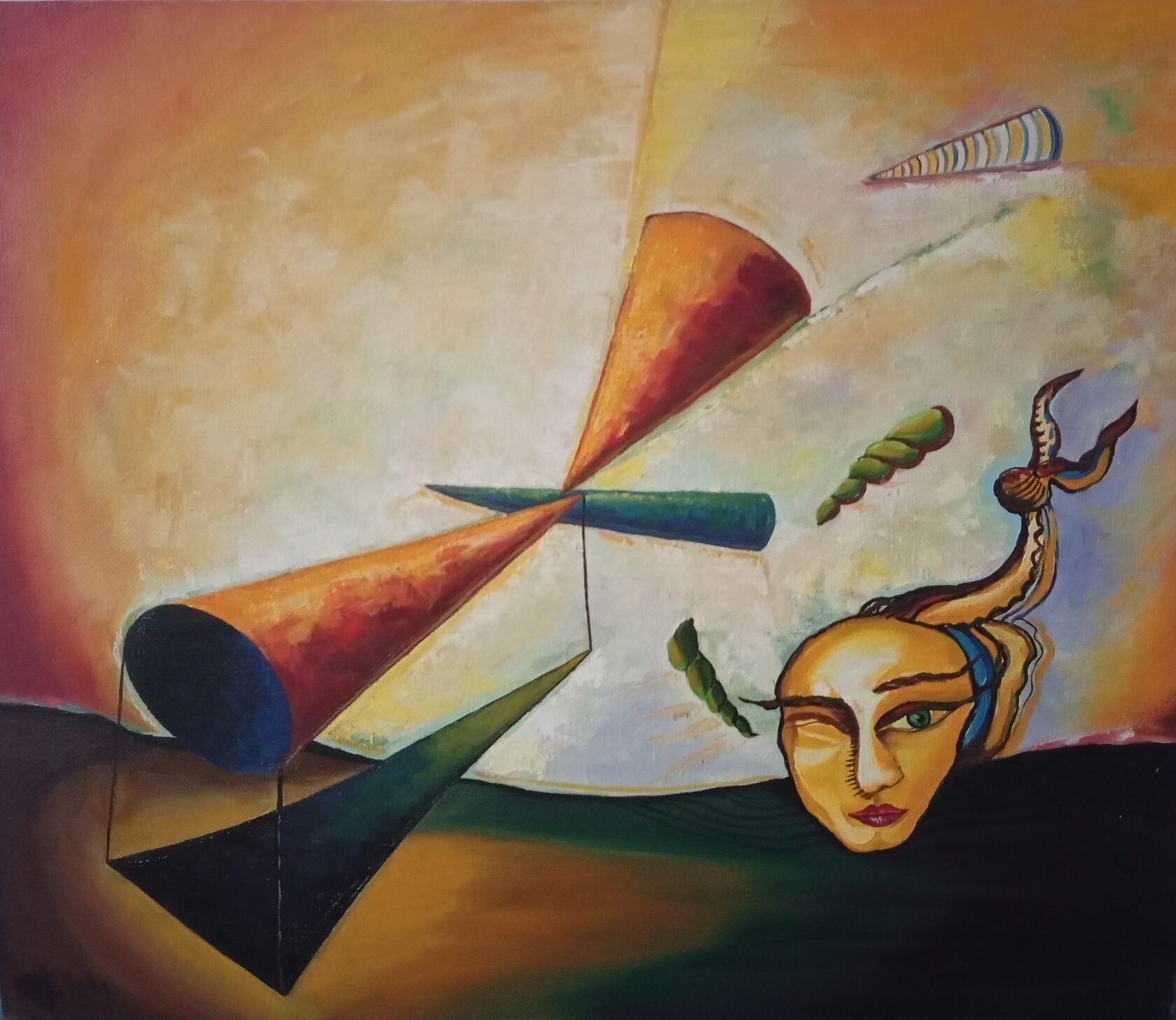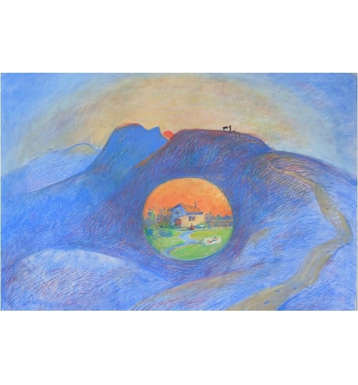 Отражающая настроение художницы, проживаемого периода жизни создания работы. Мечтательное настроение, возможность пребывания в состоянии довольства приобретенной профессии «Интерьерный художник». А так же любовью к круглым картинам