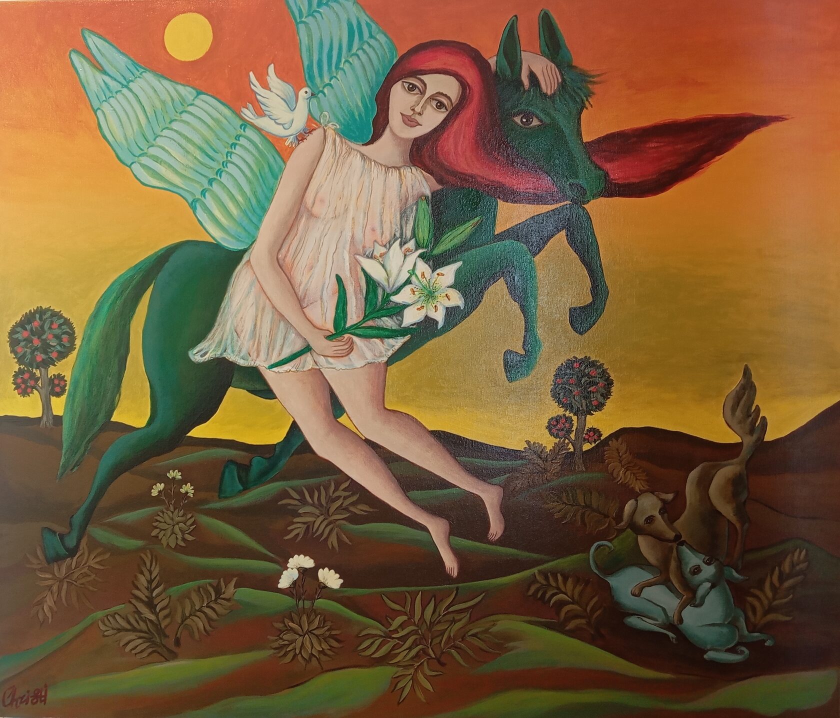 Картина отражает внутренний собирательный образ, сложившийся из формированного представления космического пространства, так любимого художницей с детства. Начало отношения к тематике заложил отец художницы, читая Любена Дилова «Звездные приключения Ники и Нуми», 9- ти летней девочке.